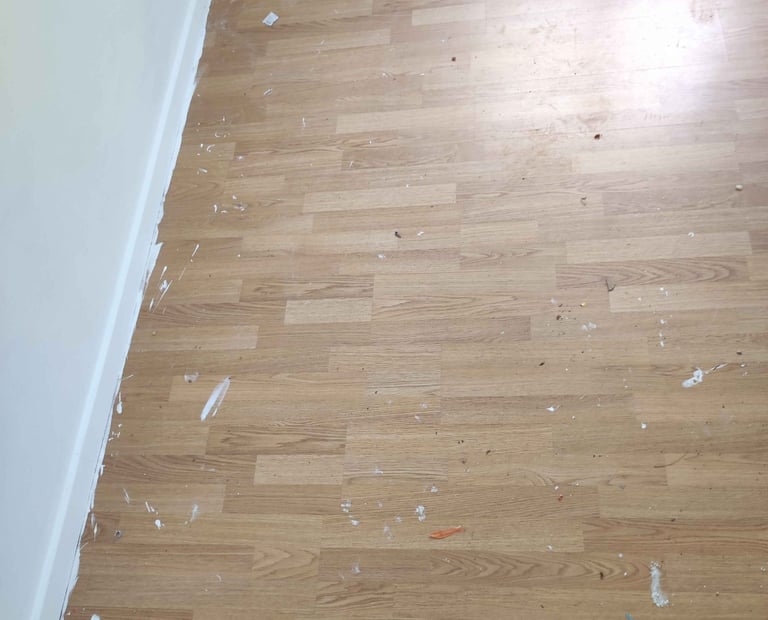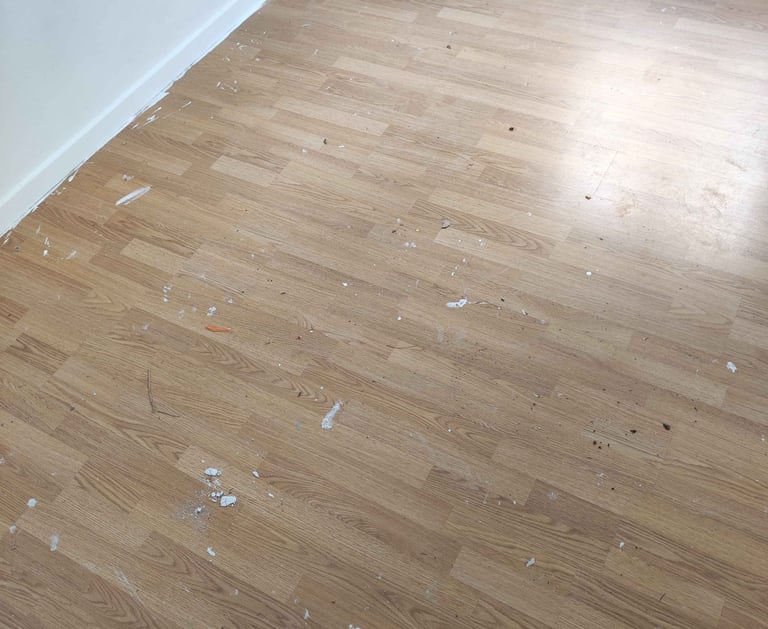 Nettoyage d'une fin de chantier sur La Rochelle, après avoir subit des rénovations pour location, beaucoup de salissure globale de la maison, ici ont à un exemple d'un sol qui n'a pas été protégé lors des travaux.